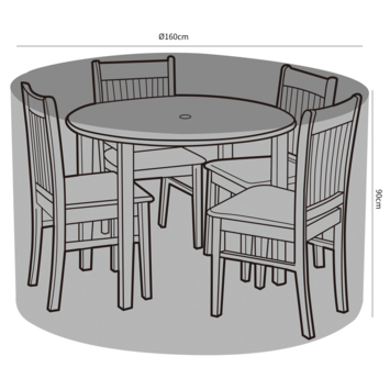 Met een diameter van 160 cm en een hoogte van 90 cm past de tuintafelhoes over veel gangbare ronde tuintafels. Je vindt deze tuintafel hoes bij GAMMA als je je tafel netjes wilt houden tussen gebruik door.