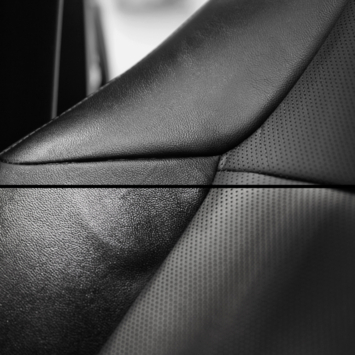 Leren stoelen van de oldtimer weer op en top, leer was dof en vies geworden maar ziet er nu weer levendig uit.