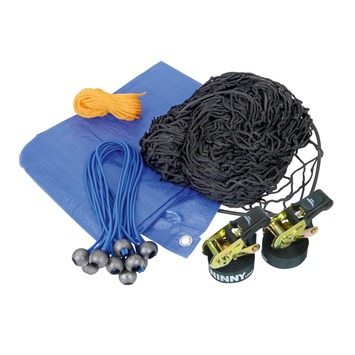 De aanhangerset compleet 200x300cm zorgt ervoor dat jouw lading stevig op jouw aanhanger wordt bevestigd en tevens wordt beschermd. Je vindt in de aanhangerset compleet 200x300cm onder meer een handig aanhangernet van 200cm bij 300cm waarmee je voorkomt dat de lading van de aanhangwagen afwaait. Met de 2 spanbanden van 25mm dik en 5m lang zorg je ervoor dat de lading niet verschuift. Het afdekzeil van 2m bij 3m is ideaal voor een lading die snel wegwaait, zoals z'nd. Voor het vastzetten en zekeren van de lading kan je de 10 bevestigingselastieken van 30cm lang en een doorsnede van 4mm gebruiken, maar ook het touw van 10m lang en 4mm dik. Kortom, de aanhangerset compleet 200x300cm is ideaal voor het beveiligen en beschermen van de lading op jouw aanhangwagen.