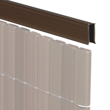 Het U-profiel walnoot voor balkonscherm is gemaakt voor het balkonscherm PVC walnoot dat je ook bij GAMMA kunt kopen. Met het profiel dek je je balkonscherm netjes af aan de bovenzijde. Het voorkomt dat er vuil, regen en ongedierte in de open bovenzijde komen. Bovendien bedek je de scherpe randjes en zorg je voor een keurige afwerking van je tuinscherm. Het profiel is van kunststof, is 150 cm lang en heeft de uitstraling van walnoothout.