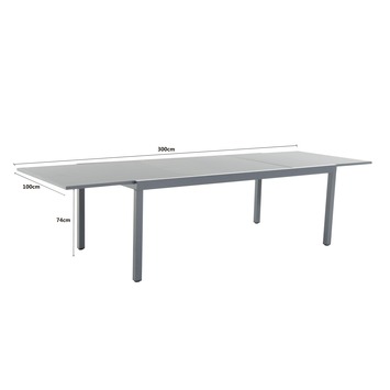 Grote (vrienden)groepen of families kiezen voor de tafel Sevilla. De tafel heeft een strak design en is uitschuifbaar, waardoor je met velen kan tafelen. Het frame is gemaakt uit antraciet aluminium en afgewerkt met een elegant tafelblad uit veiligheidsglas. Standaard is de tafel 200 cm lang, uitgeschoven is de tafel 300 cm lang. Combineer de tafel met stoelen in dezelfde kleur zoals de stoel Livorno of de standenstoel Como. Je kan de tafel Sevilla ook combineren met stoelen in een andere kleur voor een moderne look & feel.