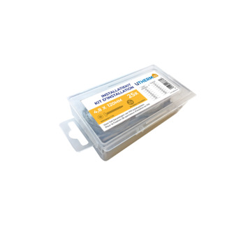 Deze installatiekit bestaat uit houtschroeven met een lengte van 120 mm en rondellen. Gebruik de schroeven in combinatie met de rondellen om de Utherm4U basisplaat vast te klemmen in de draagstructuur.