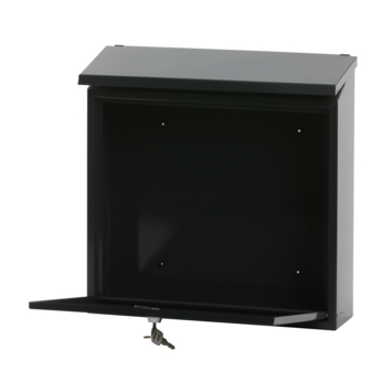 Deze Antraciet V-part Malagan wandbrievenbus is voorzien van een cilinderslot met 2 sleutels. De inworpopening aan de bovenkant zit onder de klep, zodat de post beschermd is. De inworpopening heeft een breedte van 35,8 cm en een hoogte van 4 cm.