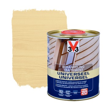 De V33 behandeling universeel is een duurzaam houtbeschermingsproduct met een langdurige werking dat diep in het hout dringt. De behandeling werkt doeltreffend tegen alle houtetende insecten, rotting en schimmelvorming. Bovendien bevat het geen geur en is de behandeling geschikt voor binnen- en buitenhout.