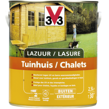 De V33 beits Tuinhuis Color is een duurzame, zijdeglanzende houtbeits, ideaal voor tuinhuizen. Deze beits beschermt het hout en bedekt zijn oneffenheden dankzij de hoge dekkracht van de beits. In deze reeks zijn verschillende kleuren beschikbaar.