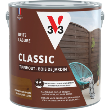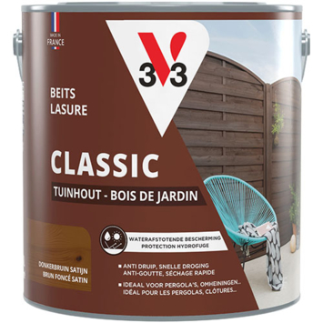 Met de V33 Classic beits tuinhout zijdemat donkerbruin 2,5 liter bescherm je buitenhout op een eenvoudige manier tegen invloeden van buitenaf. Deze beits is bedoeld voor toepassingen zoals pergola’s, omheiningen, schommels, tuinschermen, hekken en bloembakken. De watergedragen beits vormt een beschermende laag tegen water en vocht en helpt het hout beschermen tegen uv-straling. Zo blijft het hout beter bestand tegen dagelijks gebruik buiten.