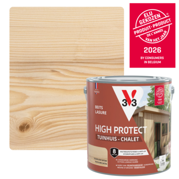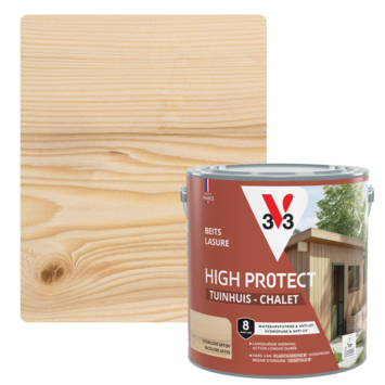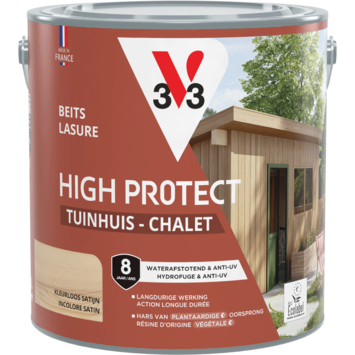 Met de V33 High Protect beits tuinhuis zijdeglans kleurloos 2,5 liter bescherm je houten tuinhuizen en bergingen tegen alle weersomstandigheden. Deze watergedragen beits is geschikt voor buitengebruik en kan ook worden toegepast op luiken, poorten en hekken.