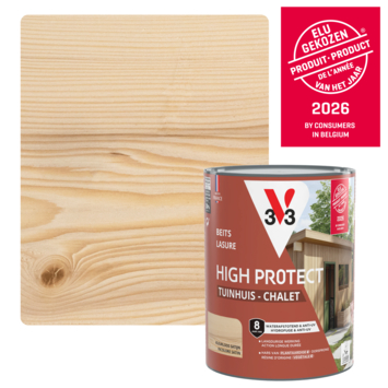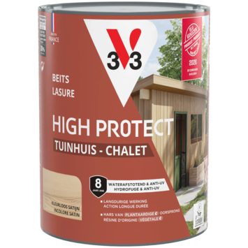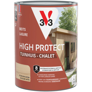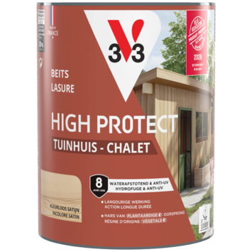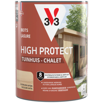 Met de V33 High Protect beits tuinhuis zijdeglans kleurloos 750 ml bescherm je houten tuinhuizen en bergingen tegen alle weersomstandigheden. Deze watergedragen beits is geschikt voor buitengebruik en kan ook worden toegepast op luiken, poorten en hekken.