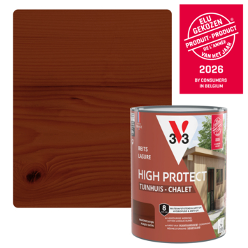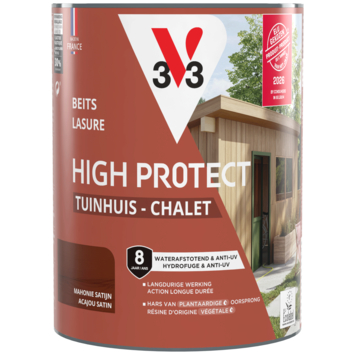 Met de V33 High Protect beits tuinhuis zijdeglans mahonie 750 ml bescherm je het hout van je tuinhuis tegen weer en wind. Deze beits is geschikt voor buitengebruik en wordt aanbevolen voor tuinhuizen en tuinbergingen. De beits is waterafstotend en helpt het hout beschermen tegen zon, regen, sneeuw en vorst, zodat het langer in goede staat blijft.