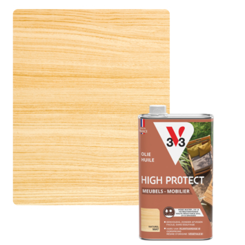 Met de V33 High Protect olie terras en gevel houtolie zijdemat naturel 1 liter bescherm je houten oppervlakken buitenshuis tegen weer en gebruik. Deze houtolie is geschikt voor horizontale toepassingen zoals terrasplanken en terrastegels, maar ook voor verticale delen zoals gevelbekleding, schuttingen, schommels en plantenbakken.