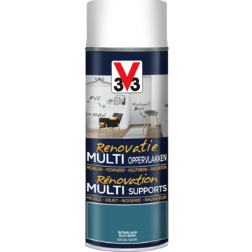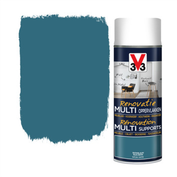 De V33 multi renovatieverf batikblauw is gericht op een uitmuntende bescherming en behoud van de natuurlijke uitstraling van je oppervlak. De verf is geschikt om toe te passen op bijvoorbeeld aluminium of hout. De verf kan worden aangebracht door middel van een kwast of roller en heeft een verwerkingstemperatuur van tussen de 12-25 °C. De verf heeft een totale droogtijd van 24 uur. Een bijkomend voordeel van de verf is dat het na droging makkelijk te reinigen is. Verder is de verf overschilderbaar na 6 uur. Het product wordt geleverd in een spuitbus en heeft een inhoudsmaat van 400 militer. De inhoud is voldoende voor een rendement van 2 m².