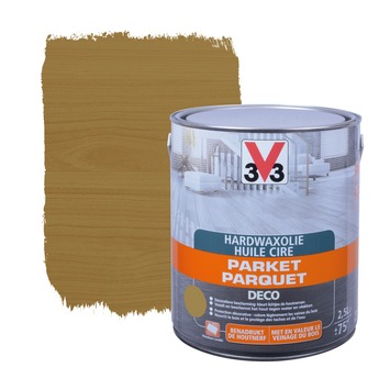 De hardwaxolie van V33 voedt én beschermt je parket. Daarnaast benadrukt het de natuurlijke houttekening. Daarnaast geeft het (weer) kleur aan je parket en benadrukt het de natuurlijke houttekening. Verkrijgbaar in verschillende tinten, waaronder matte midden eik (2,5 liter). Een goede raad: hou je parket in topconditie met bijkomende producten van V33.