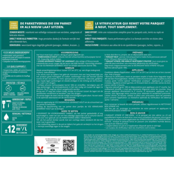De matte kleurloze parketvernis van V33 bevat geen solventen en is geschikt voor frequent gebruik van je parket. Bovendien heeft de parketvernis een snelle droogtijd, want om de 2 uur kan je een nieuwe laag leggen. Daarnaast is de parketvernis bestand tegen krassen, schokken, water én vlekken. In deze reeks zijn verschillende kleuren en glansgraden beschikbaar.