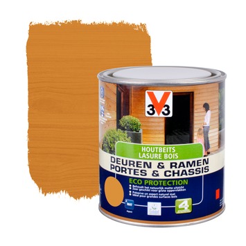 De Eco Protection houtbeits voor ramen en deuren van V33 is een matte houtbeschermingsbeits op basis van natuurlijke houtvezels. Daarnaast is de beits microporeus waardoor het hout kan blijven ademen en druipvrij. De beits beschermt het hout tegen weersinvloeden en UV-stralen. Naast ramen en deuren kan deze beits ook gebruikt worden voor houten tuinhuizen, gevels en dakpunten.