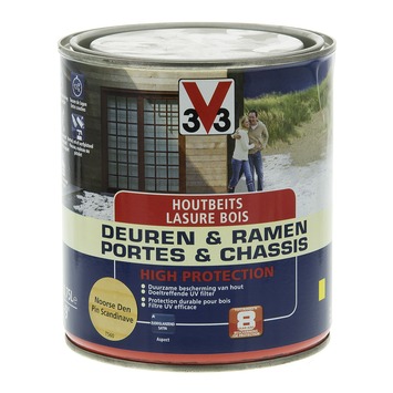 De High Protection houtbeits voor ramen en deuren van V33 is een zijdeglanzende houtbeschermingsbeits die zeer goed waterafstotend, UV- en weersbestendig is. Daarnaast is de beits microporeus waardoor het hout kan blijven ademen en druipvrij. Naast ramen en deuren kan deze beits ook gebruikt worden voor houten tuinhuizen, gevels en dakpunten.