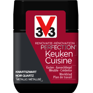 De V33 renovatieverf keuken kwartszwart tester is ideaal voor het creëren van een oppervlak met een glanzende uitstraling. De verf is geschikt om toe te passen op bijvoorbeeld aluminium of hout. De verf kan worden aangebracht door middel van een kwast of roller en heeft een verwerkingstemperatuur van tussen de 12-25 °C. De verf heeft een totale droogtijd van 24 uur. Een bijkomend voordeel van de verf is dat het na droging makkelijk te reinigen is. Verder is de verf overschilderbaar na 6 uur. Het product wordt geleverd in een emmer en heeft een inhoudsmaat van 75 mililiter. De inhoud is voldoende voor een rendement van 1 m².