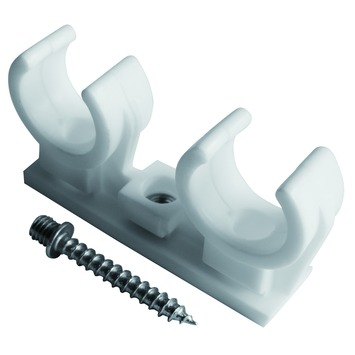 Klem of knel je leidingen en eindtoepassingen aan elkaar met de pvc klemkoppelingen van Van Marcke. Verkrijgbaar in verschillende uitvoeringen met verschillende diameters. Deze dubbele clipbeugel heeft een diameter van 15 mm.