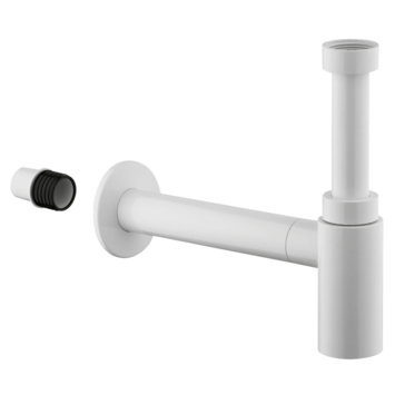 Deze stijlvolle sifon wit voor je wastafel heeft een afvoerbuis en afdekrozet.
