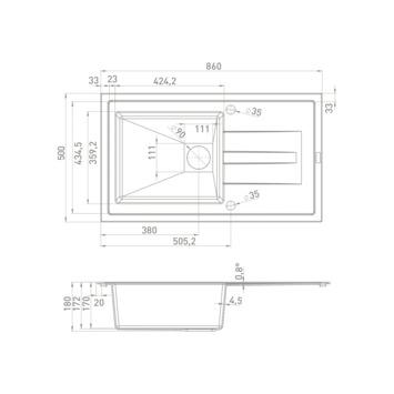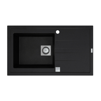 Zwarte, composiet inbouw spoeltafel met 1 spoelbak. Deze spoelbak is niet alleen schok- en krasbestendig maar ook bestand tegen hitte tot +300°C en koude tot -40°C.