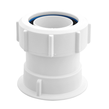 Deze kunststof moer met aan beide zijden een klemstuk gebruik je voor de overgang te maken van lood naar kunststof.