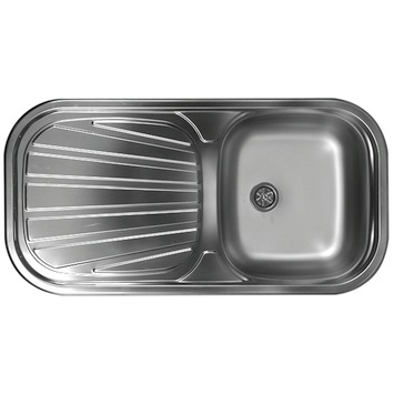 De Symphony spoeltafel van Van Marcke beschikt over een vierkante spoelbak met afgeronde hoeken evenals een afdruipplaat met een praktisch en prachtig 'schelpachtig' afdruippatroon. De spoeltafel is gemaakt uit inox en is makkelijk te installeren in je doe-het-zelf-keuken. Tip: combineer met een kleine of een grote keukenkraan naar keuze in hetzelfde materiaal.