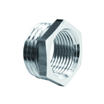 Koppel je leidingen en eindtoepassingen aan elkaar met de chromen koppelingen van Van Marcke. Verkrijgbaar in verschillende uitvoeringen met verschillende diameters. Deze enkele ziel heeft een diameter van 1/2" (15 à 16 mm) aan de M-kant en 3/8" (10 mm) aan de F-kant.