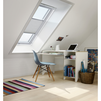 Het Velux Energie Comfort dakraamplisségordijn FHC CK02 1045 Wit is een verduisterend plisségordijn, ideaal voor de slaapkamer. Door de aluminiumcoating aan de binnenzijde van de dubbele plisséstof houdt dit plisségordijn de warmte in de zomer buiten en tijdens de winter binnen. Dit plisségordijn is d.m.v. de handgrepen aan de boven- en onderzijde handmatig te bedienen. De stof kan aan zowel de bovenzijde als onderzijde verschoven worden, waardoor je de stof kunt verschuiven naar elke positie van het raam.
