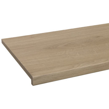 De vensterbank MDF natuur eiken 250x30 cm 28 mm gebruik je niet alleen als vensterbank, maar ook als legplank of wandplank. Het paneel heeft een toplaag van CPL. Dat is een sterke kunststof laag die goed bestand is tegen krassen. De kern is van MDF. De vensterbank past over een bestaande vensterbank van 14 millimeter dik. De neus is 28 millimeter hoog en heeft scherpe hoeken met een radius van 3 millimeter. Daardoor oogt de vorm rank en strak. Voor het netjes afwerken van de zijkanten zijn bijpassende kantstroken los te koop. Je maakt het oppervlak schoon met een vochtige doek en een niet-agressief schoonmaakmiddel.
