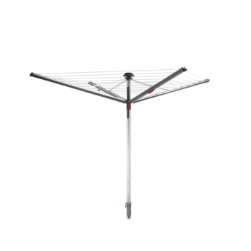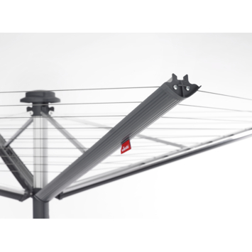 Deze droogmolen is vervaardigd uit duurzaam aluminium, en de lijnen worden beschermd door een stijlvolle kap die automatisch sluit wanneer de molen wordt ingeklapt. Zo blijven de waslijnen schoon en gebruiksklaar.
