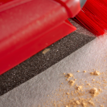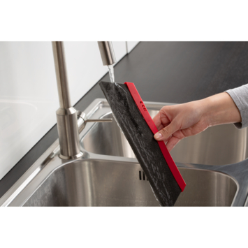 - Fijne zwarte vezels vangen stof en haren effectief op