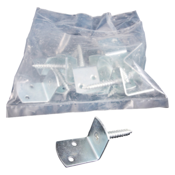 Je gebruikt een vlechtschermsteun als hoeksteun bij het monteren van een houten schutting op een tuinpaal. Je schroeft de steun aan een tuinpaal om vervolgens het scherm te monteren. Je hoeft dan niet te lang met het scherm in je handen te staan om hem recht te houden. De L-vormige schermsteun heeft voorgeboorde gaten en is van verzinkt staal gemaakt. Daardoor krijgt roestvorming amper de kans. Deze steunen komen per 12 stuks. Dit model vlechtschermsteun wordt ook wel L-beslag genoemd.