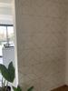 Het behang heeft een heel mooie structuur. De gouden randjes lichten op als het zonlicht er op valt. Zonder direct zonlicht nemen ze de kleur over van de andere muren (bij ons groen). Het geometrische patroon en het neutrale wit en goud passen in elke kamer, in elk interieur. Ik kan nog nooit eerder vliesbehang gebruikt, maar het was echt heel eenvoudig en makkelijk.