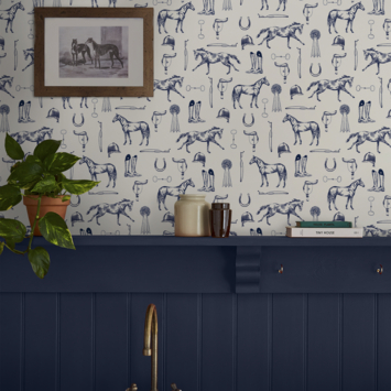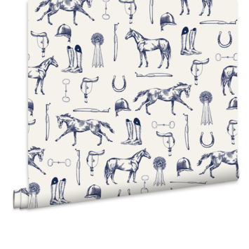 Vliesbehang Joules Equestrian paarden print Crème/Blauw 12890247.99