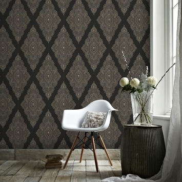 Met het vliesbehang - Juweel zwart-goud 31-166 van Julien Mc Donald kan iedereen behangen. Vliesbehang is zowel gemakkelijk aan te brengen als te verwijderen, waarbij je geen behangtafel of afstomer nodig heeft. Je brengt eenvoudig de lijm aan op de muur en het behang kan worden geplakt. Voor een zo goed mogelijk resultaat dienen de te beplakken oppervlakken droog, egaal van kleur en vlak te zijn. Dit vliesbehang is onderdeel van het ruime assortiment vliesbehang bij GAMMA, waarmee je huis voorzien kan worden van een moderne, klassieke of een sfeervolle stijl. Kortom, kies voor vliesbehang als je op zoek bent naar een gemakkelijke en snelle manier om je kamer een nieuwe uitstraling te geven volgens de laatste woontrends.