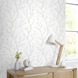 mooi behang, makkelijk te verwerken. haalde 3 banen uit 1 rol. het motief verspringt mooi, waardoor het niet opvalt en er heel natuurlijk uit ziet. het kleine glittertje in de knopjes is leuk. ben blij met het resultaat