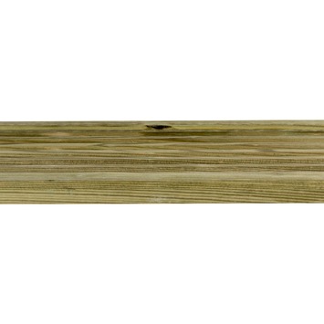 De plank is eenzijdig geprofileerd, wat betekent dat de bovenkant een reliëf heeft voor een antislipoppervlak, terwijl de onderkant vlak is voor een gemakkelijke installatie. Dit zorgt niet alleen voor een veilige loopoppervlakte, maar ook voor een mooie afwerking van je vlonder of terras. Door het gebruik van gecertificeerd grenenhout en de impregnering is de plank goed bestand tegen weersinvloeden, zodat je jarenlang kunt genieten van een mooi en functioneel buitenterrein.