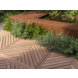 De vlondertegel visgraat hardhout is een vierkant van 100 cm en 2,4 cm hoog. De vlondertegel bestaat uit 27 gladde planken die in visgraatmotief in een lijst, bovenop 7 latten, zijn vastgeschroefd. Om corrosie van de schroeven te voorkomen zijn de gaten en schroeven afgedicht met parafine. Monteer de vlondertegel met zelfborende inox-schroeven.