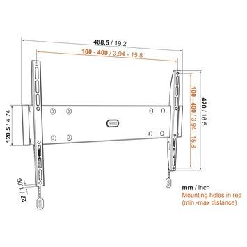 Deze vaste TV steun komt slechts 2,7 cm van de wand. Deze TV steun is geschikt voor een platte LCD, LED en Plasma TV van 81cm tot 140cm of van 32" tot 55". Deze maten worden diagonaal gemeten. Het maximale gewicht van de TV is 30kg. Met deze TV steunen worden alle bevestigingsmaterialen meegeleverd. De maximale bevestigingsmaten van de TV zijn 400 x 400mm.