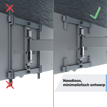 Het slanke ontwerp van de COMFORT Full-Motion+ tv-beugel sluit perfect aan bij het minimalistische uiterlijk van je OLED-tv. Door de optimale kijkhoek van de OLED-tv is een kantelfunctie overbodig, en met het TiltAnchor™ systeem bevestig je je tv eenvoudig en veilig.