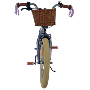 Dankzij het verstelbare stuur en zadel groeit de fiets mee. Het rieten mandje voegt een speels detail toe en biedt handige opbergruimte. De stevige fietsstandaard voorkomt dat de fiets omvalt en houdt hem netjes op zijn plek.
