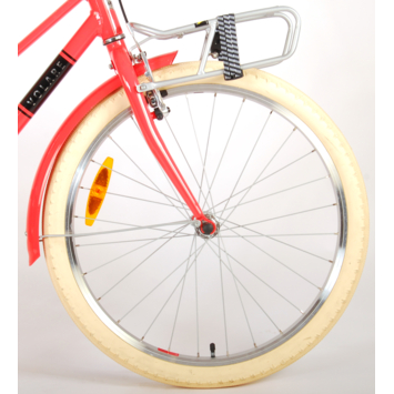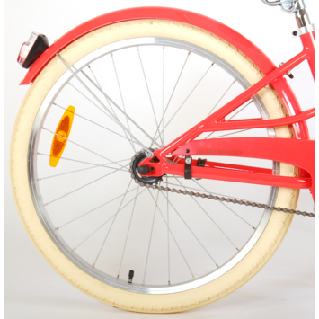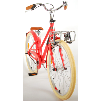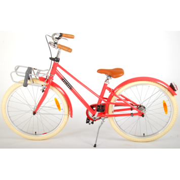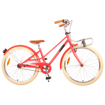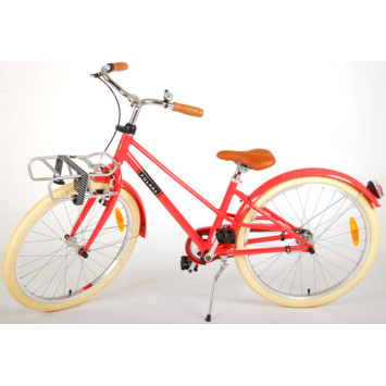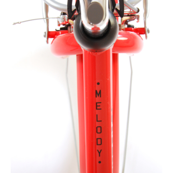 De prachtige kinderfiets Melody is van superieure kwaliteit. Het frame van deze fiets is gemaakt van ultra licht aluminium, slechts 13,5 kilo! Deze fiets met dit moderne frame, de stoere pistol type kettingkast en praktische voordrager is een must have voor iedere hippe meid. Om vaart te kunnen minderen heeft de fiets een veilig Aluminium V-brake systeem met handrem en terugtraprem. Om de fiets makkelijk neer te kunnen zetten heef hij een sterk standaard. De handvaten zijn van Kraton, een heerlijk zacht rubber, waardoor deze lekkerder in de hand liggen en extra comfort bieden. De zadelbuis is extra laag met een extra lange zadelpen, waardoor de fiets met uw kind mee kan groeien. Daarnaast heeft de fiets een aluminium smart control systeem, dat ervoor zorgt dat het stuur begrensd is (niet in hoogte verstelbaar). Bovendien heeft de fiets voor- en achterverlichting. De fiets is voor 85% afgemonteerd. De 24 inch luchtbanden maken dat deze fiets geschikt is voor meiden tussen de 8 en 10 jaar oud met kledingmaat 128-140. Op deze hippe kinderfiets Melody wil iedere meid naar school fietsen!