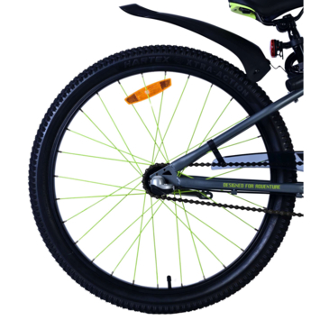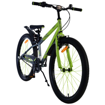 De Volare Rocky 24 inch kinderfiets in groen/grijs is een stevige en comfortabele fiets voor jonge avonturiers. De 3 versnellingen maken het gemakkelijk om verschillende soorten terrein te verkennen, terwijl de handrem zorgt voor veilige stops. De pistooltype gesloten kettingkast voorkomt dat vuil de ketting aantast, waardoor het onderhoud eenvoudig blijft.
