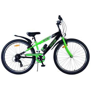De Volare Sportivo 26 inch kinderfiets in groenzwart biedt alles wat je kind nodig heeft voor een veilige en comfortabele rit. Met twee handremmen en 7 versnellingen kan je kind altijd de juiste snelheid kiezen. De fiets heeft reflectoren voor en achter, evenals in de wielen, voor extra zichtbaarheid. De fiets is ook uitgerust met een leuke bel voor extra veiligheid.