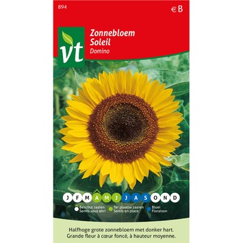 Wie van moestuinieren houdt, vindt zeker zijn gading bij GAMMA: van kleine zaadjes tot grote moestuinbakken. Een van die kleine zaadjes zijn deze zaden voor zonnebloem Domino (halfhoog). Ideale zaaitijd: april tot juni. Tip: halfhoge grote zonnebloem met donker hart.