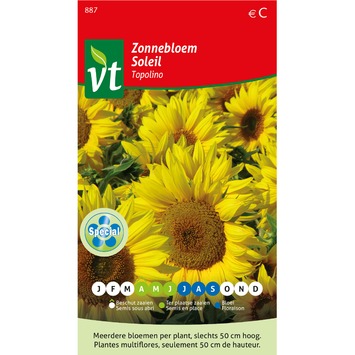 Wie van moestuinieren houdt, vindt zeker zijn gading bij GAMMA: van kleine zaadjes tot grote moestuinbakken. Een van die kleine zaadjes zijn deze zaden voor zonnebloem Topolino (laag). Ideale zaaitijd: april tot juni. Tip: meerdere bloemen per plant, zo'n 50 cm hoog.