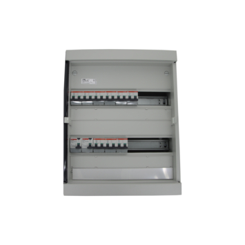 Voorbekabelde verdeelkast voor renovatie of nieuwbouw. 1 verdeelkast met doorzichtige deur - 1 differentieelschakelaar 2P 40A 300mA - 1 differentieelschakelaar 2P 40A 30mA - 3 automatische schakelaars 2P C16A - 6 automatische schakelaars 2P C20A - 1 aardrail - 4 bevestigingsschroeven - 6 doppen voor dubbele isolatie - 2 etiketten voor kringaanduiding - reserveplaats voor uitbreiding tot 14 modules - ééndraadsschema