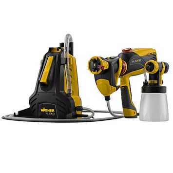 De universele verfspuit Flexio W990 van Wagner is geschikt voor de grootste verfklussen. Zowel binnen als buiten, horizontaal en verticaal. Het spuitsysteem verwerkt alle watergedragen dispersie- en latexverven met directe aanzuiging, dus rechtstreeks uit de emmer. Het verfpistool verwerkt alle gangbare verfsoorten zonder verdunning en de verfhoeveelheid is traploos regelbaar van 0 tot 525 ml / min. Lengte van de luchtslang: 7 meter. Inclusief praktische interne opbergkoffer.