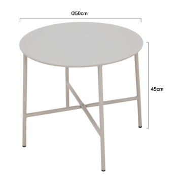 Wakefield bijzettafel Chris beige metaal ø 50 cm geeft je buiten meteen een vaste plek voor een drankje, boek of kleine spullen. Door het compacte formaat zet je de tafel makkelijk naast een stoel of loungeset. Zo blijft je balkon, terras of tuin overzichtelijk en praktisch ingericht.
