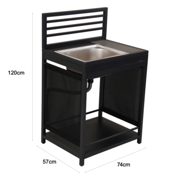 Deze tuinkeuken is een paradepaardje als het gaat om specificaties. Met een hoogte van 120 cm, een breedte van 74 cm en een diepte van 57 cm heeft het een compact en efficiënt formaat. Het solide metaal als materiaal zorgt ervoor dat je buitenkeuken tegen een stootje kan en is bestand tegen diverse weersomstandigheden. Daarnaast biedt de donkergrijze antraciet kleur een moderne en tijdloze look. Doordat deze terraskeuken niet is uitgerust met wielen, staat het stevig en stabiel op elke ondergrond.