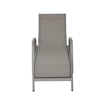 De bekleding in taupe textileen is weerbestendig en onderhoudsvriendelijk, ideaal voor buitengebruik. Bovendien is het licht en comfortabel.